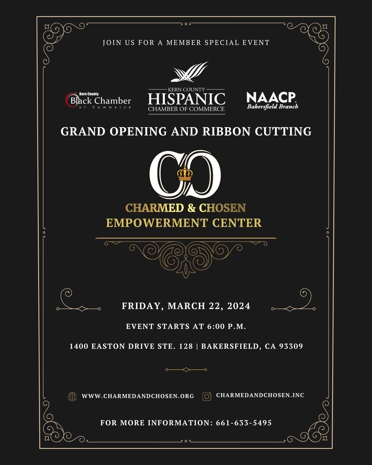 Charmed & Chosen Empowerment Center Grand Opening and Ribbon Cutting Date: Friday, March 22, 2024 Event Starts at 6 PM 1400 Easton Drive Suite 128...